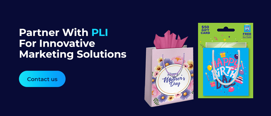 PLI Card Marketing Solutions is committed to helping you create a successful gift card program with our innovative solutions. At PLI, our experts specialize in card design, production, packaging, displays and fulfillment. Work with us to create a card that shows off exactly what sets your brand apart.